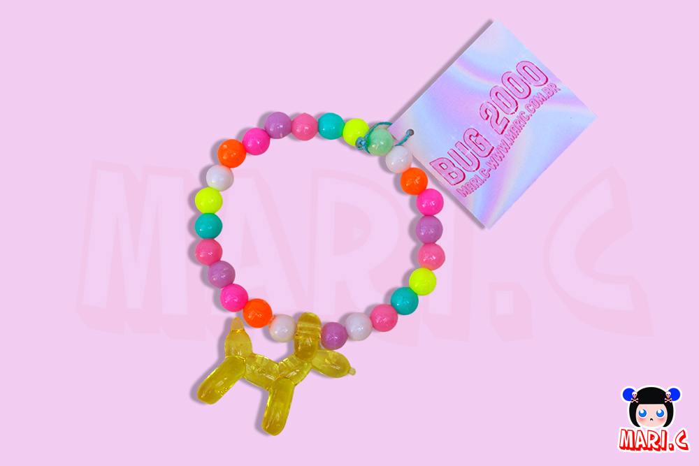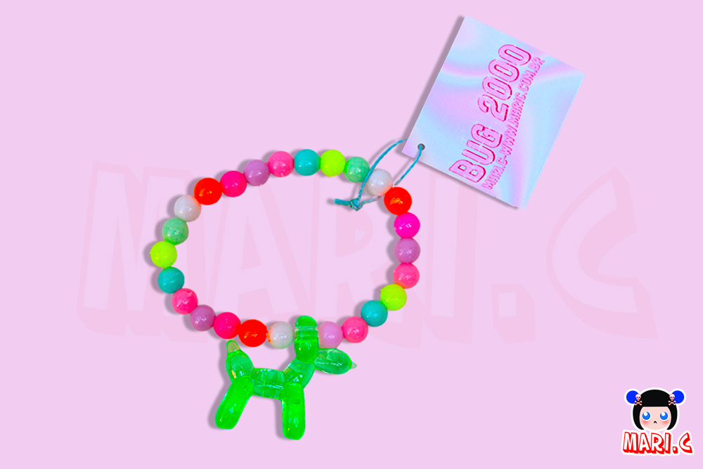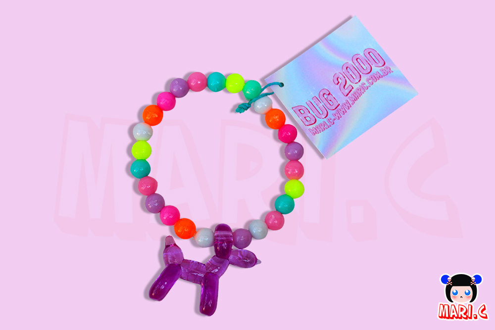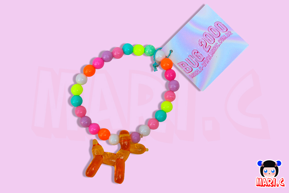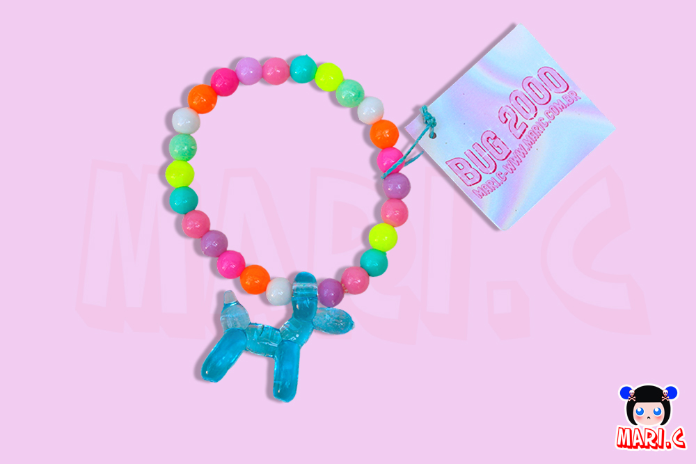 Pulseira com contas coloridas e pingente de cachorro em acrílico, trazendo um toque divertido e delicado para o seu visual.